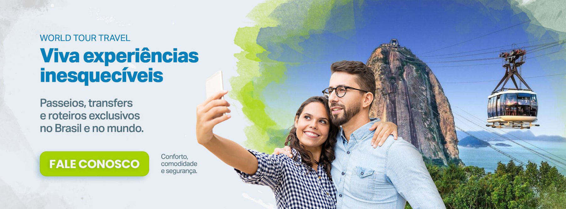 Com a World Tour Travel, você desfruta de serviços de transfer privativos, tours personalizados e soluções completas para uma experiência única. Seja para visitantes nacionais ou internacionais, nosso objetivo é ser o facilitador de seus sonhos, garantindo que cada detalhe de sua viagem seja perfeito.