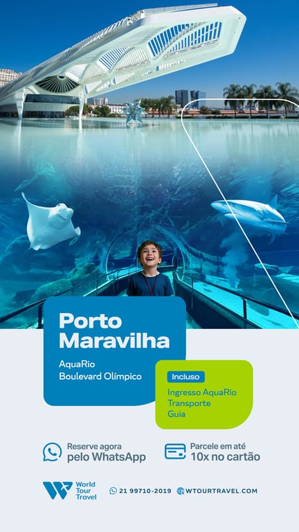 Duração: 5 horas Aquarário Rio de Janeiro Experiência instagramável Ideal para famílias
